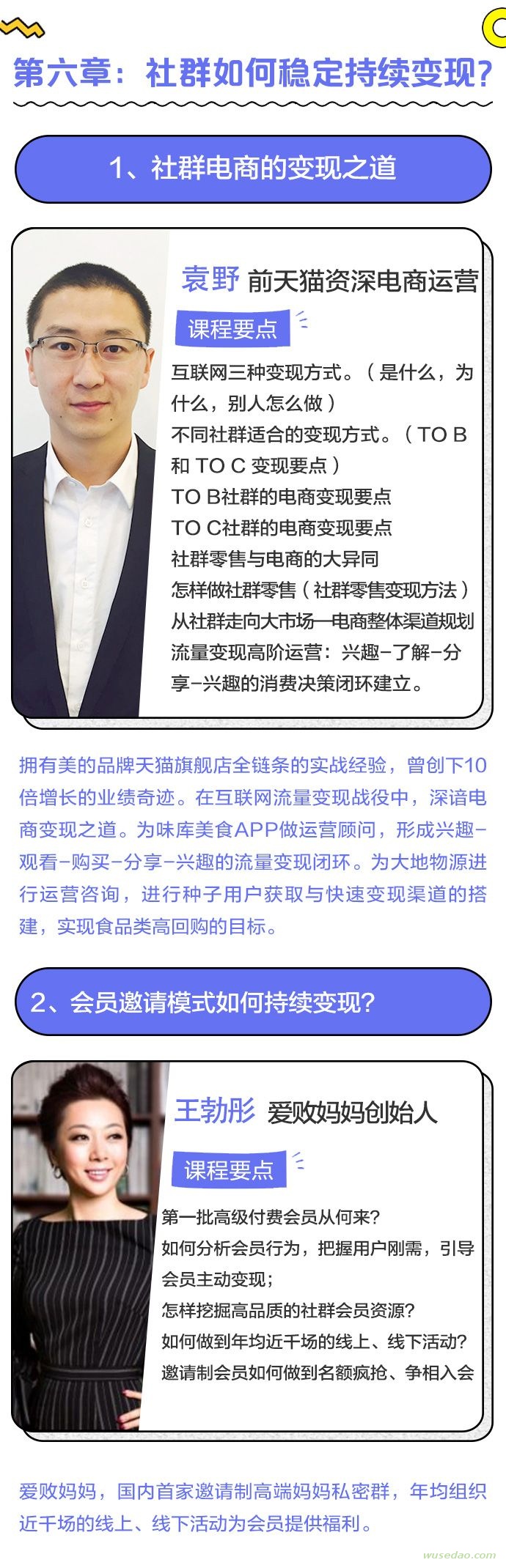 馒头商学院联合7大国内知名社群、知名运营导师联合开讲,全面讲解社群商业前景、拉新、管理、分层、提升活跃度、变现等各个社群运营环节,全流程实操案例分享,帮你层层击破社群运营困境。